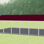 This is a 24x41 Vertical Roof Carport that comes with 7 feet tall legs, 14-gauge tubing, and carport legs that are 5 feet on centers. Additionally, it has 2 feet corner braces and center brace on every leg. You can also buy extra bows separately. Truss upgrade is available. You can add taller leg columns to this carport to increase the clearance. We design custom carports up to 20 feet tall leg height. A 20 feet tall standard carport provides a center clearance of more than 23 feet, which is suitable for residential, commercial, and industrial use. You can also customize this carport by adding a gable or an extended gable on the front or back end. We offer extra sheet metal that you can use to partially close the sides or ends of the carport, depending on your needs and usage. You can also choose to close one end or both sides.