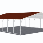 This is a 26x36 Vertical Roof Carport that comes with 7 feet tall legs, 14-gauge tubing, and carport legs that are 5 feet on centers. Additionally, it has 2 feet corner braces and center brace on every leg. You can also buy extra bows separately. Truss upgrade is available. You can add taller leg columns to this carport to increase the clearance. We design custom carports up to 20 feet tall leg height. A 20 feet tall standard carport provides a center clearance of more than 23 feet, which is suitable for residential, commercial, and industrial use. You can also customize this carport by adding a gable or an extended gable on the front or back end. We offer extra sheet metal that you can use to partially close the sides or ends of the carport, depending on your needs and usage. You can also choose to close one end or both sides.